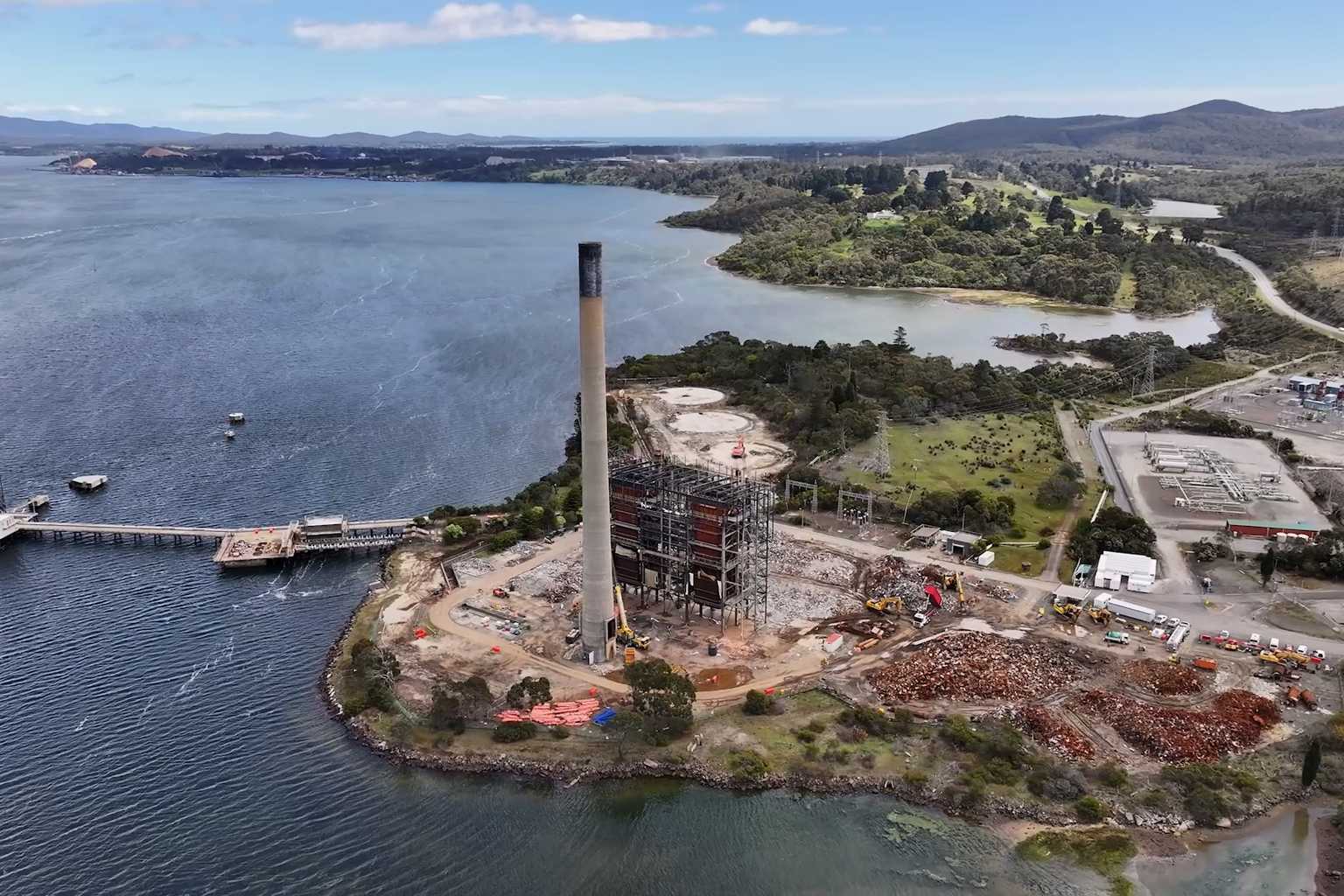The demolition enables the construction of the new Bell Bay Powerfuels facility. Image / Hydro Tasmania
