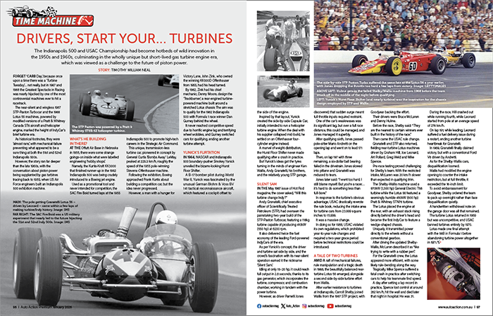 The Indianapolis 500 became a hotbed of wild innovation in the 1950s and 1960s, culminating in the unique, but short-lived gas turbine engine era.