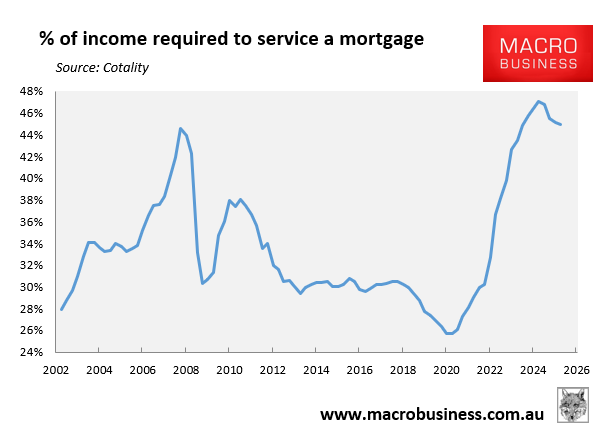 Roy Morgan’s results are supported by Cotality’s latest housing affordability report, which showed that median mortgage repayments as a share of median household income fell from a high of 47.1% in the September quarter of 2024 to 45.0% in the September quarter of 2025: