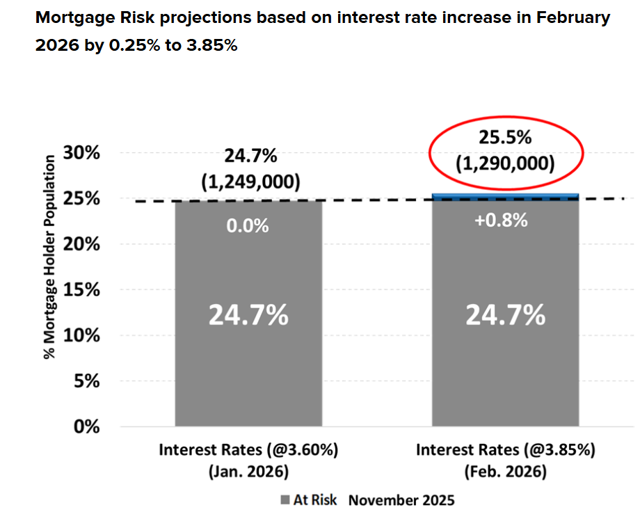 Roy Morgan classified 24.7% of mortgage holders as ‘At Risk’ of’ mortgage stress’ in the three months ending November 2025, a 3.2% decrease from August 2025 and significantly below the recent peak of 30.3% in June 2024.