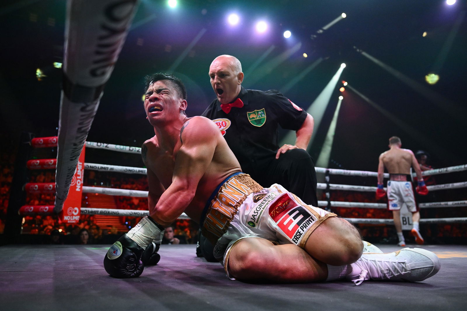 Taliva’a starting hard but then getting rocked hard by a brutal right uppercut.
