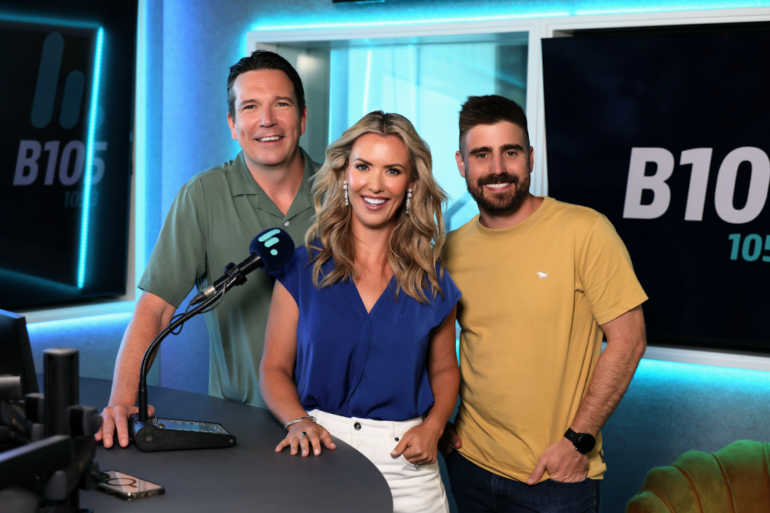 Triple M’s Marto, Margaux & Dan (Greg ‘Marto’ Martin, Margaux Parker and Dan Anstey) returns in 2026, while B105’s Stav, Abby & Matt (Stav Davidson, Abby Coleman and Matt Acton, pictured above) are back for their ninth year.