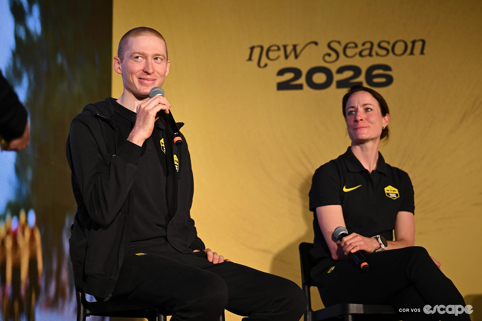 Visma-Lease a Bike’s 2026 launch event on Tuesday saw various riders announce their programmes for the season (including Jonas Vingegaard confirming his Giro-Tour double attempt) but the biggest reveal was Matteo Jorgenson’s shaved head.
