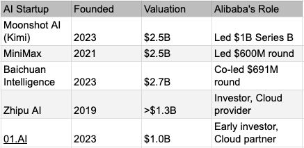 But the market share tells only part of the story. Alibaba has systematically invested in virtually every promising AI venture in China.