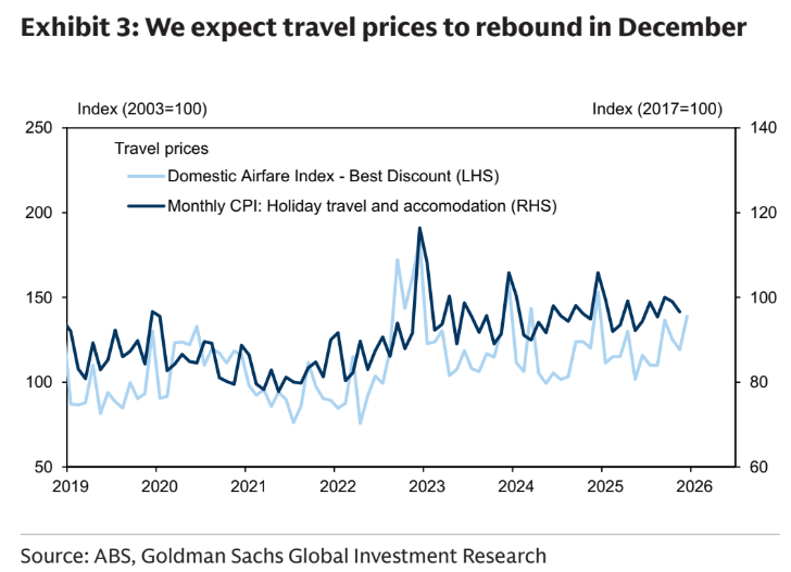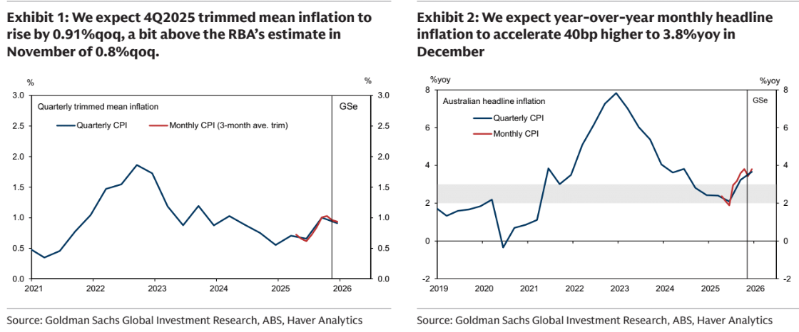 Goldman expects the ABS monthly trimmed mean will rise by 0.2% in December, resulting in a year-over-year gain of 3.2%.