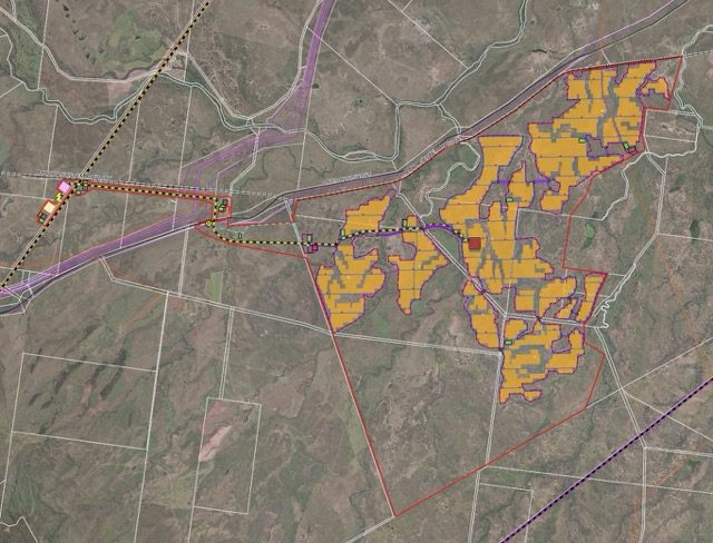 The map belies just how large the project is, with battery units proposed to be assigned to individual sections of the solar project rather than built in one location. Image: Central Queensland Power