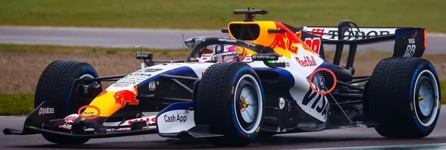 Tuesday’s running at Imola is the first time the DM01 power unit, designed and built in-house by Red Bull Powertrains, has run on track. We can see a very small Ford logo (red ellipse) on the nose and the sidepod just above the body stay. I’m pretty sure that is, in reality, about the size of Ford’s technical involvement in this project!