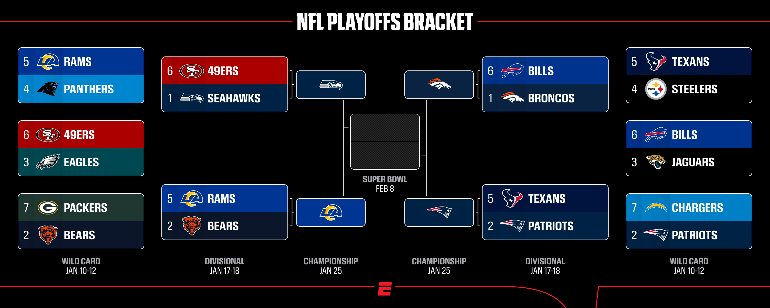 Welcome to ESPN’s NFL playoff bracket game! $50K+ in prizes. FREE to play