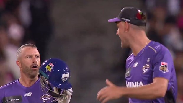 Hobart Hurricanes teammates engaged in a heated verbal encounter as emotions ran high in the BBL playoff loss to the Sixers.