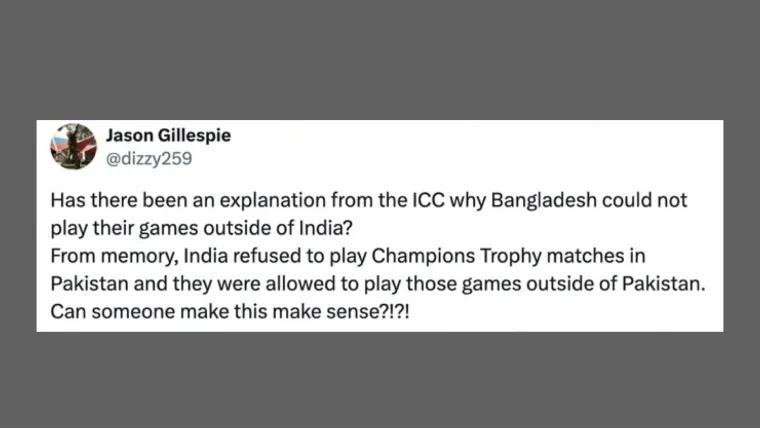 “Has there been an explanation from the ICC why Bangladesh could not play their games outside of India?” Gillespie posted on X.
