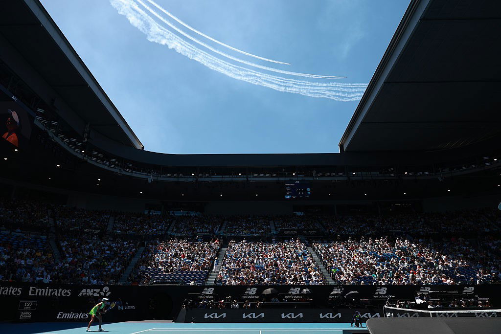Hard to know if the players are being impacted by it at all – but you can certainly hear the sound of the aircraft in the skies above Rod Laver Arena.