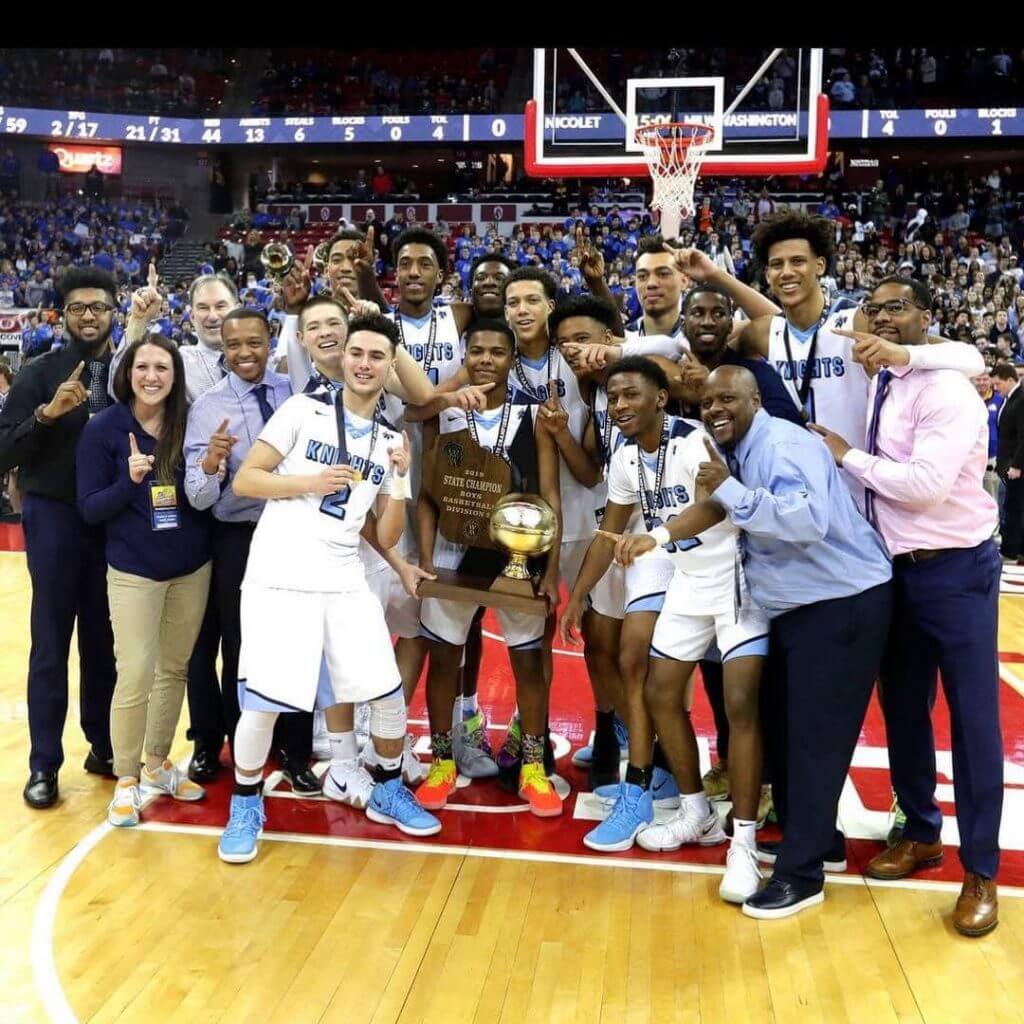 Johnson and his Nicolet High School (Glendale, Wis.) teammates celebrate their state championship in 2019. (Courtesy of Klutch)