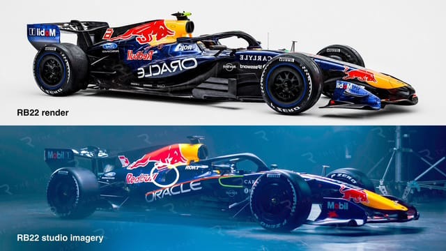 Comparing Red Bull’s initial ‘concept’ renders to the studio shots, we can see a marked difference in the sidepod size and upper surface (red highlight) detail. Could we call this a ‘zero sidepod’ solution? Well, it’s certainly smaller than most, but ‘zero’? Not really.