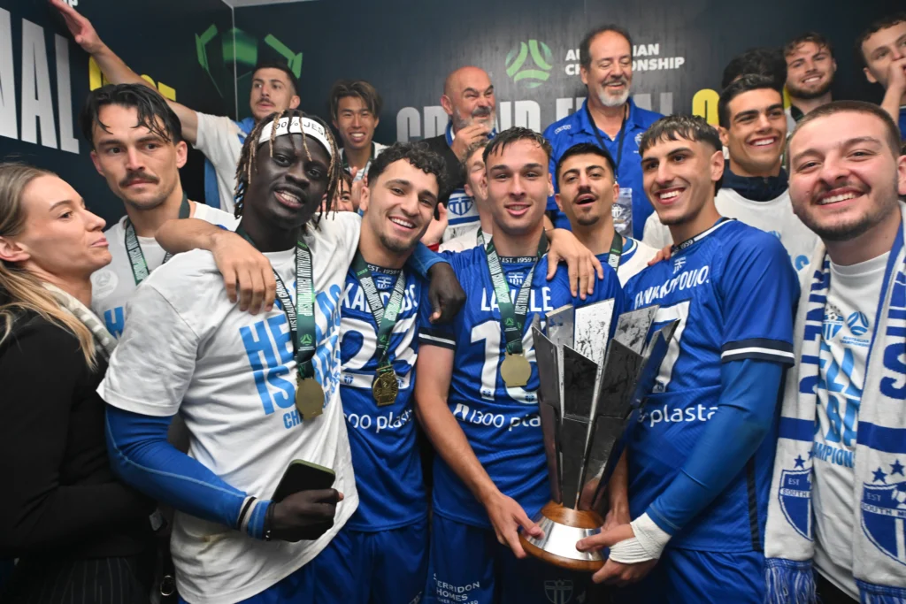 South Melbourne celebrate the Australian Championship triumph. Photo: Mark Avellino / Football Australia