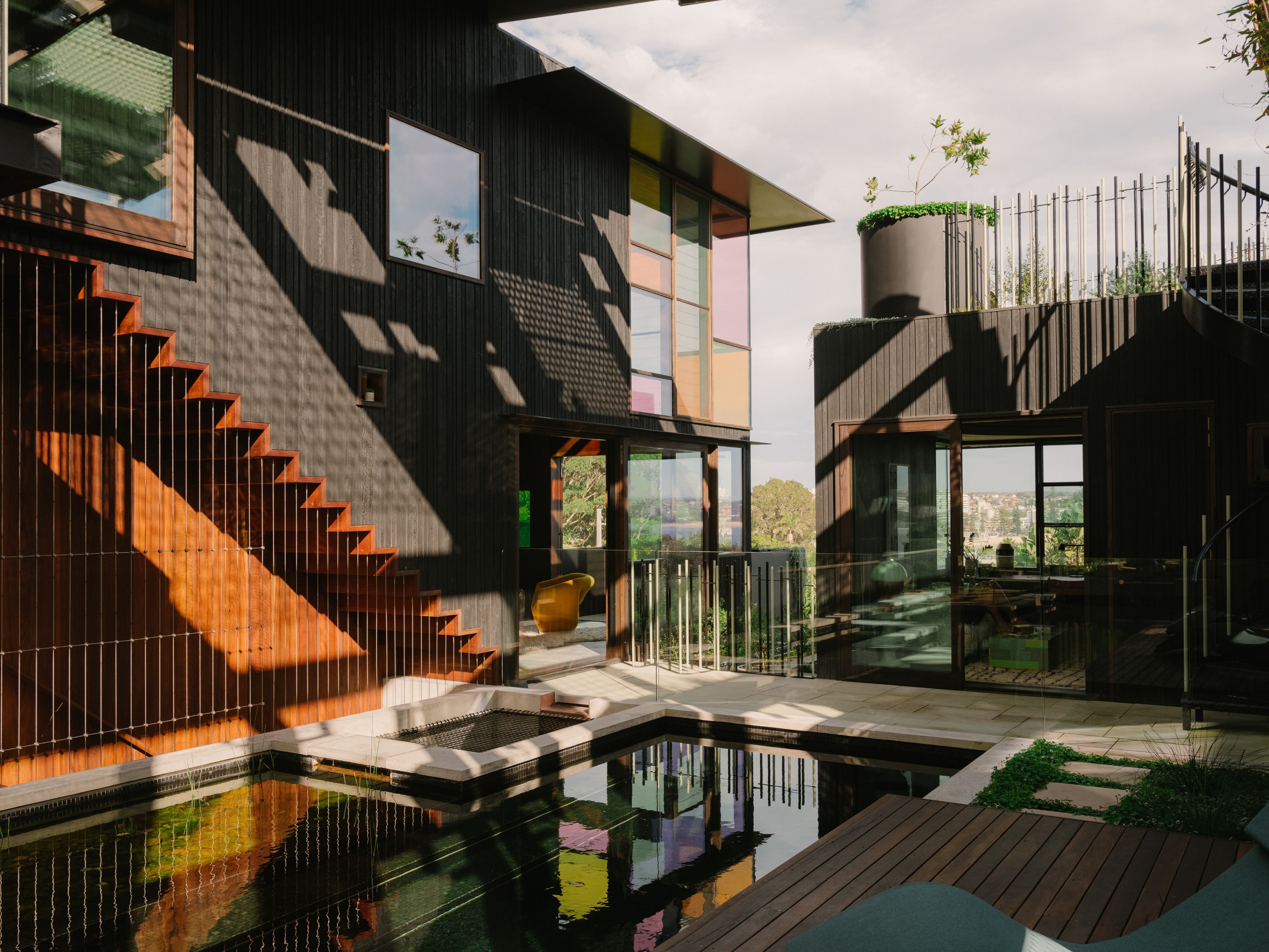 Holocene House stands out. The two-storey beachside home in Manly, Sydney, designed by C Plus Architects and Builders, pushes the boundaries of a home as we know it. From the outside, its black, box-like form is unassuming. Step inside and it feels like you’re living in a rainforest rather than a suburban block. Rooms open to a creek-like freshwater pool, recycled timbers line the walls, a canopy of plants flourishes
