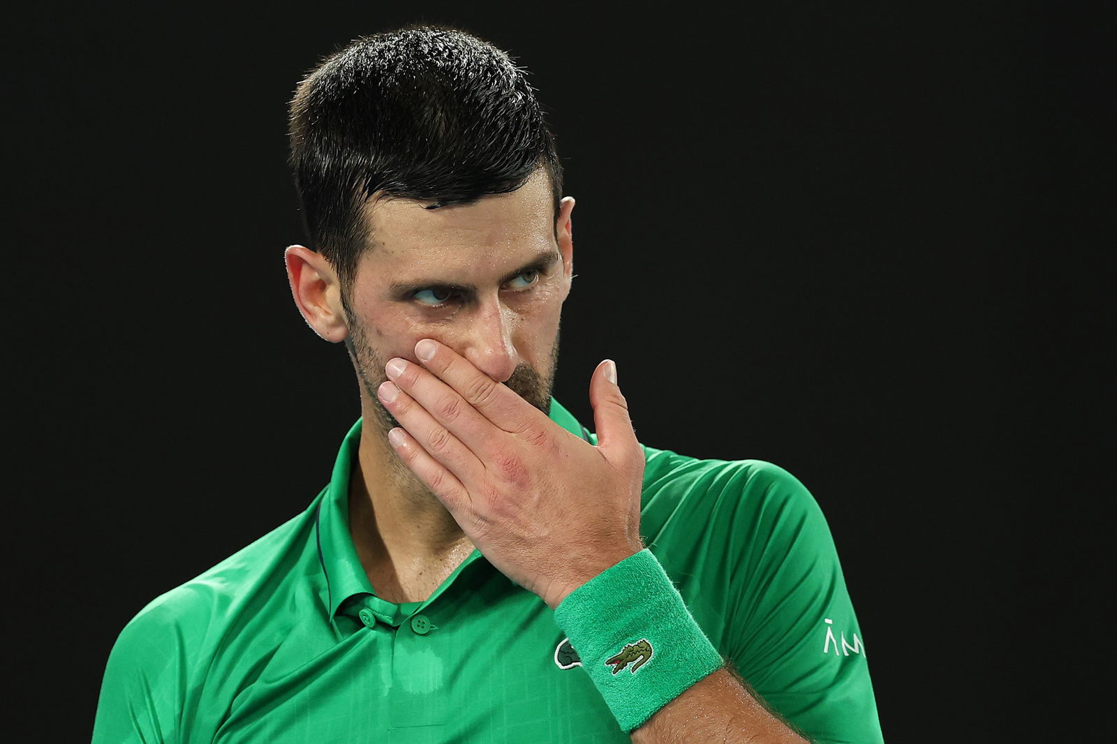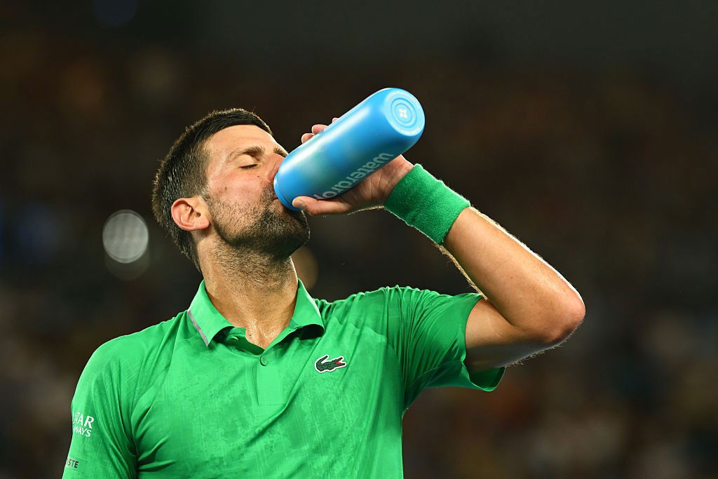Djokovic is absolutely covered in sweat. He almost fell into his seat after that last service game from Sinner, dramatically putting his towel over his head and breathing heavily.