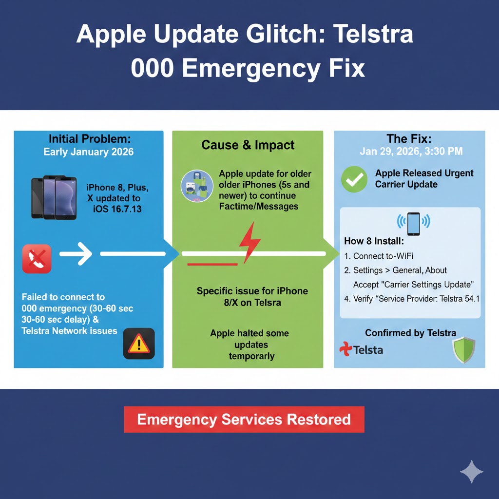 In what is good news, Apple worked fast to prepare a fix on January 29 at 3.30pm where Telstra noted: