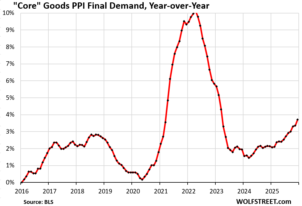 Year-over-year, the core goods PPI rose 3.7%, the worst since March 2023.