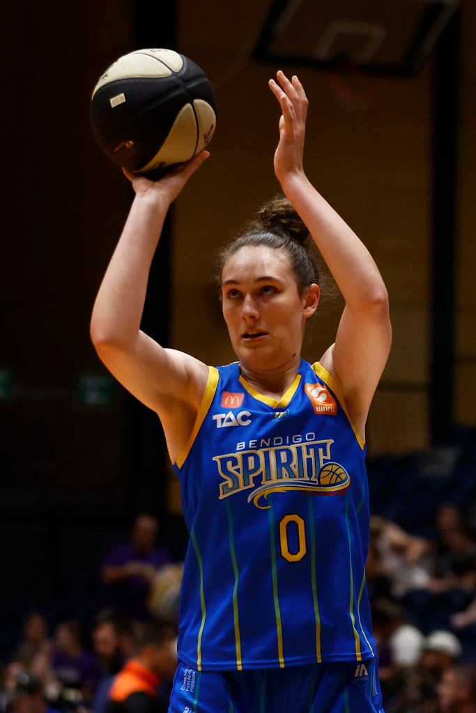 Erin Condron of the Spirit warms up before the round nine WNBL match between Bendigo Spirit and Melbourne Boomers at Red Energy Arena, on January 08, 2023, in Bendigo, Australia. Photo: Daniel Pockett/Getty Images