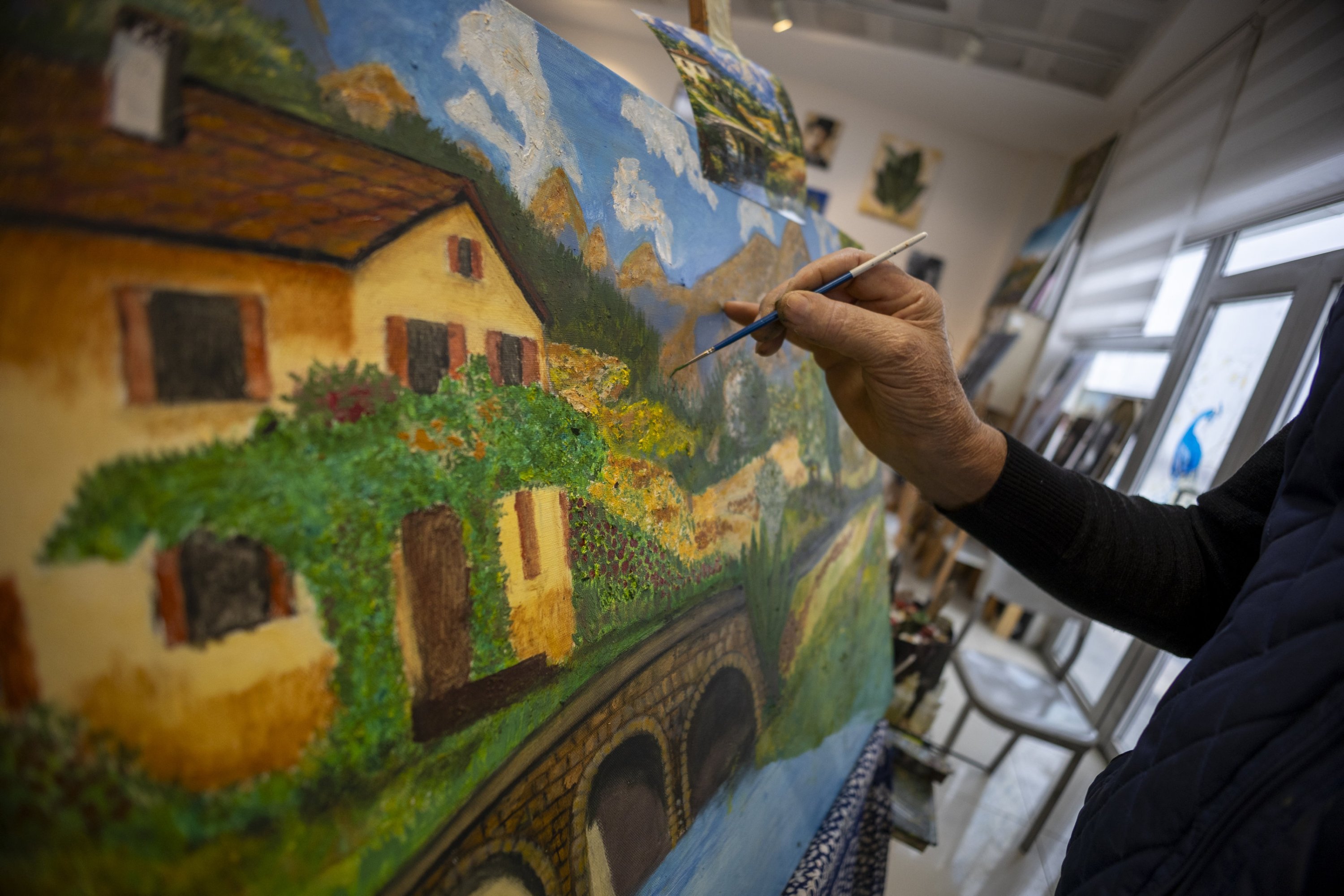 Through the course, Bozkurt has completed more than 100 paintings and says the process helps him forget his worries and feel at ease.