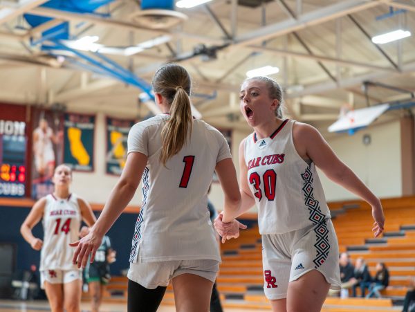 Bear Cub Bennett Gaylord high fives her fellow freshman guard Elle Picard after getting fouled by Diablo during the game on Friday, Jan. 30 at home. (Yna Bollock)