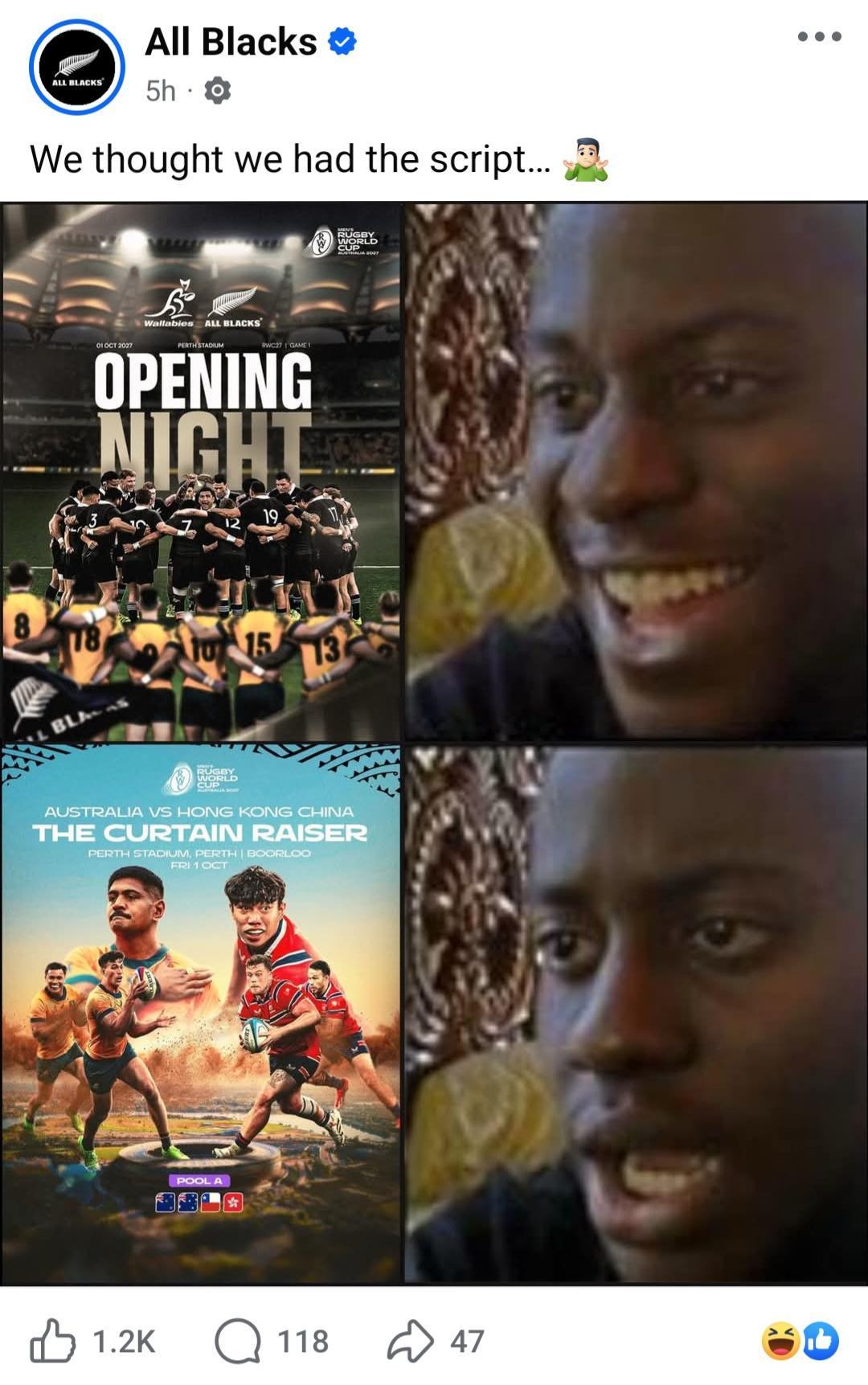 “We thought we had the script…” was the caption accompanying the post that dismissed Australia versus Hong Kong China for becoming ‘the curtain raiser’ to the World Cup clash between Bledisloe Cup rivals who just last October faced each other in Perth in their most recent Rugby Championship match.