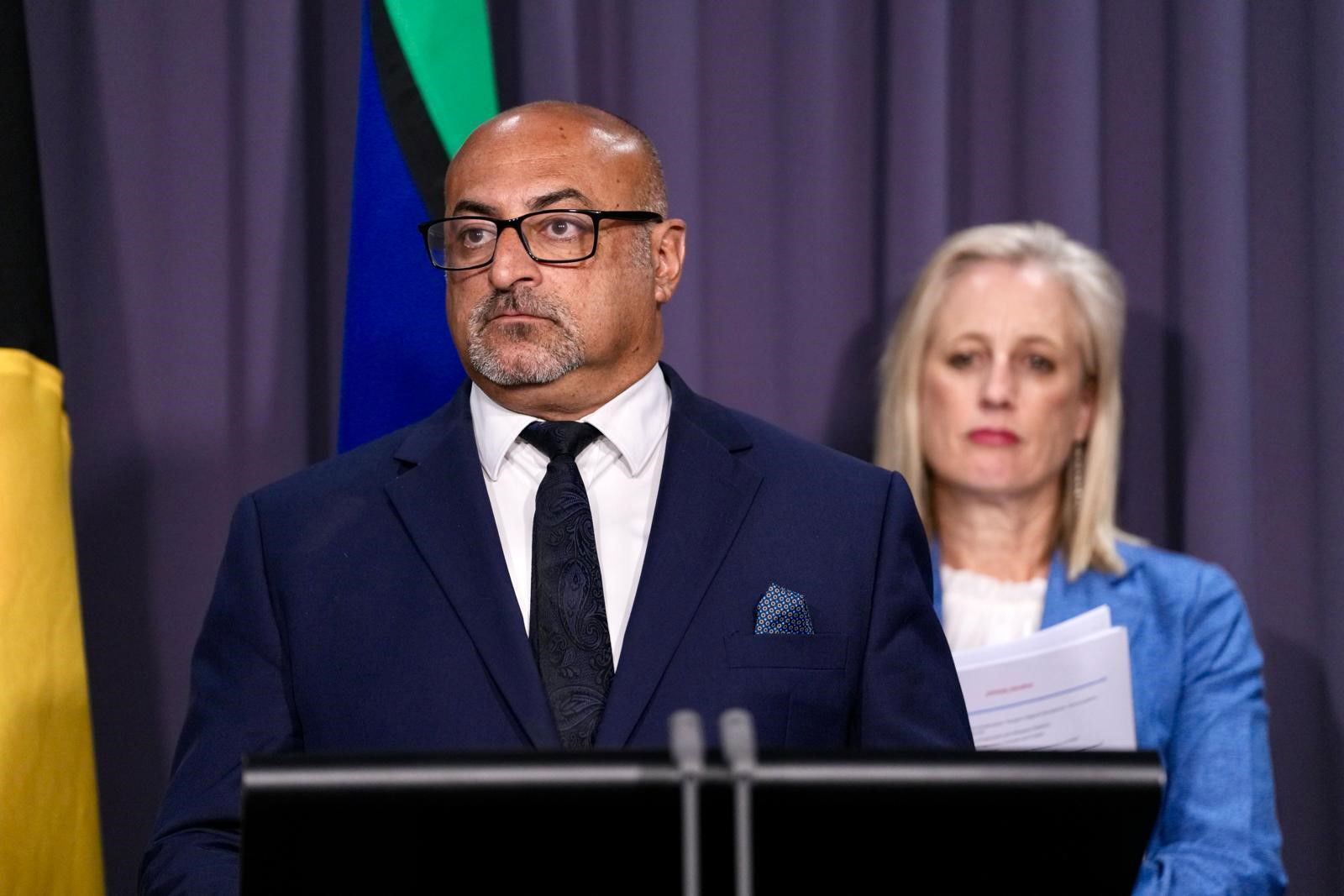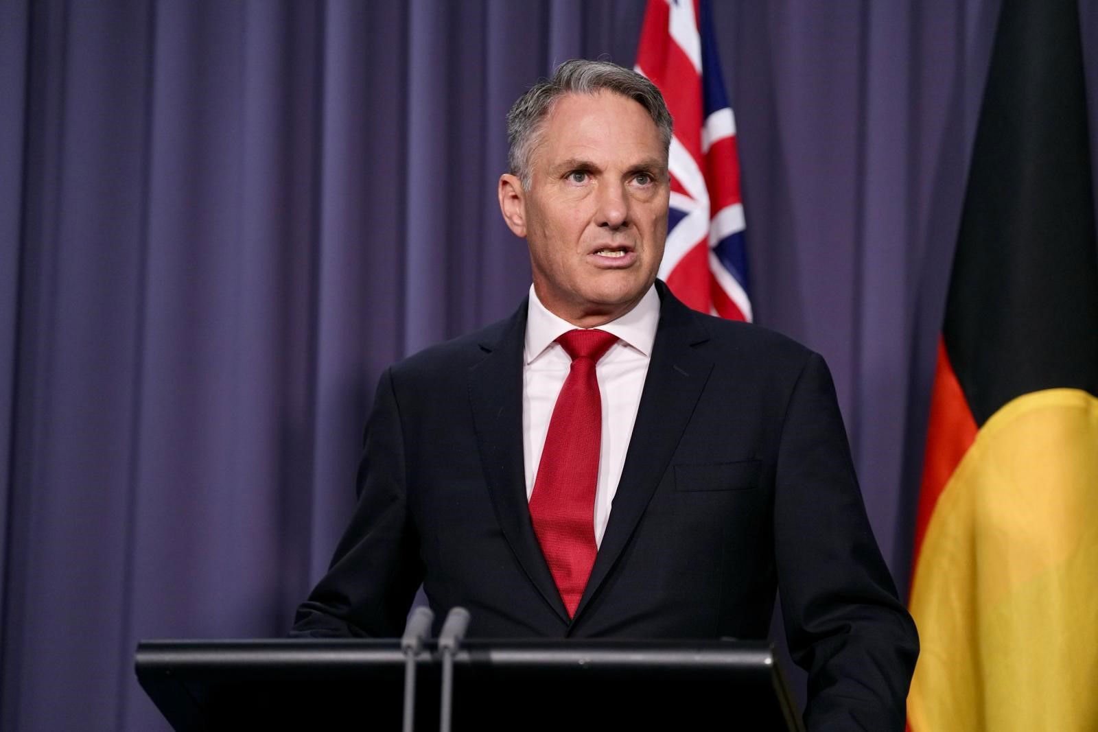Deputy Prime Minister Richard Marles has just stepped up for a press conference with Finance Minister Katy Gallagher and Assistant Defence Minister Peter Khalil.
