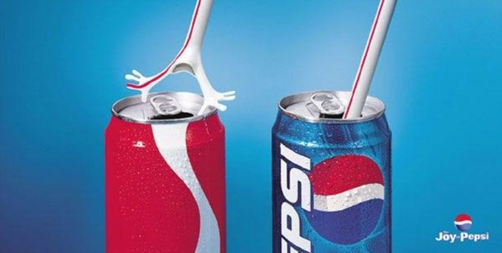 In the visual, a straw appears to strongly resist entering the competitor can, forming the basis of the comparative joke. We analysed this ad against another print execution that featured only Pepsi. Everything else remained consistent across the two ads.
