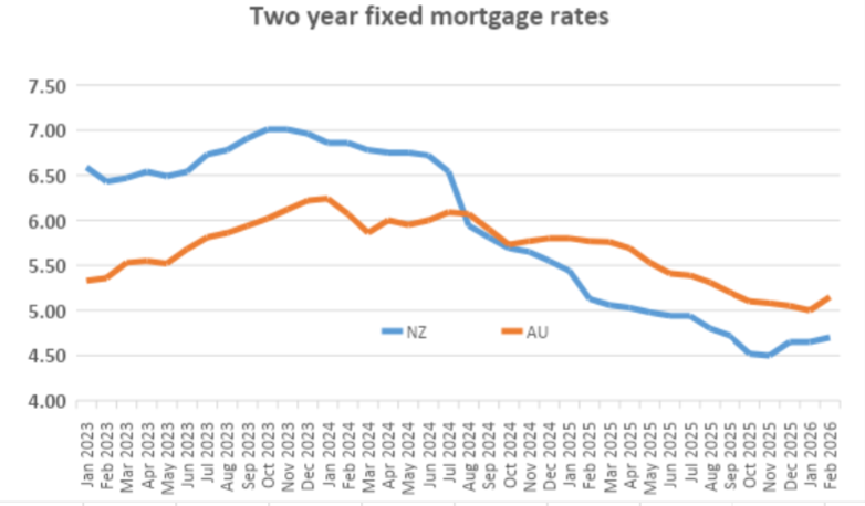 He says lots of people are asking how the cash rate differential between New Zealand and Australia might play out with mortgage rates.
