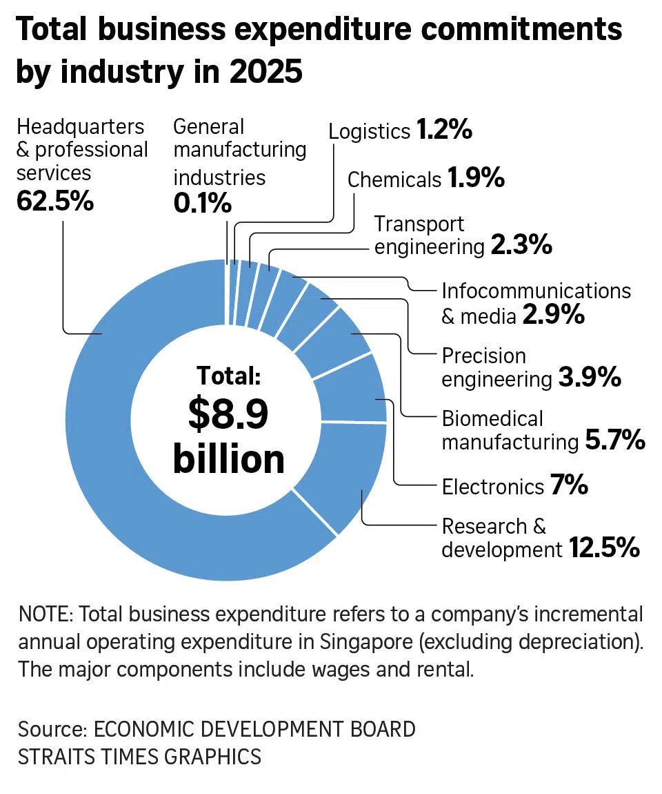Total business expenditure, which refers to a company’s incremental annual operating expenses on wages and rental, among other things, rose to $8.9 billion from $8.4 billion in 2024.