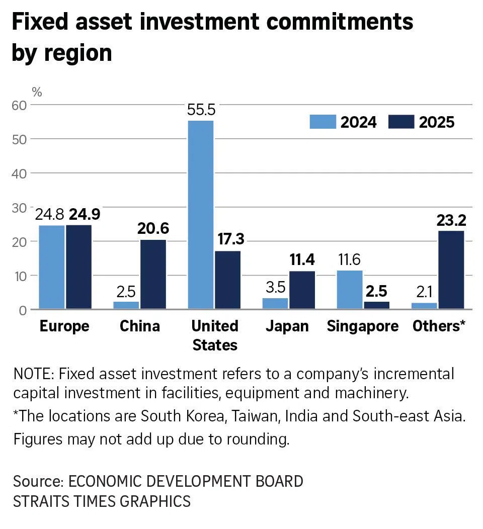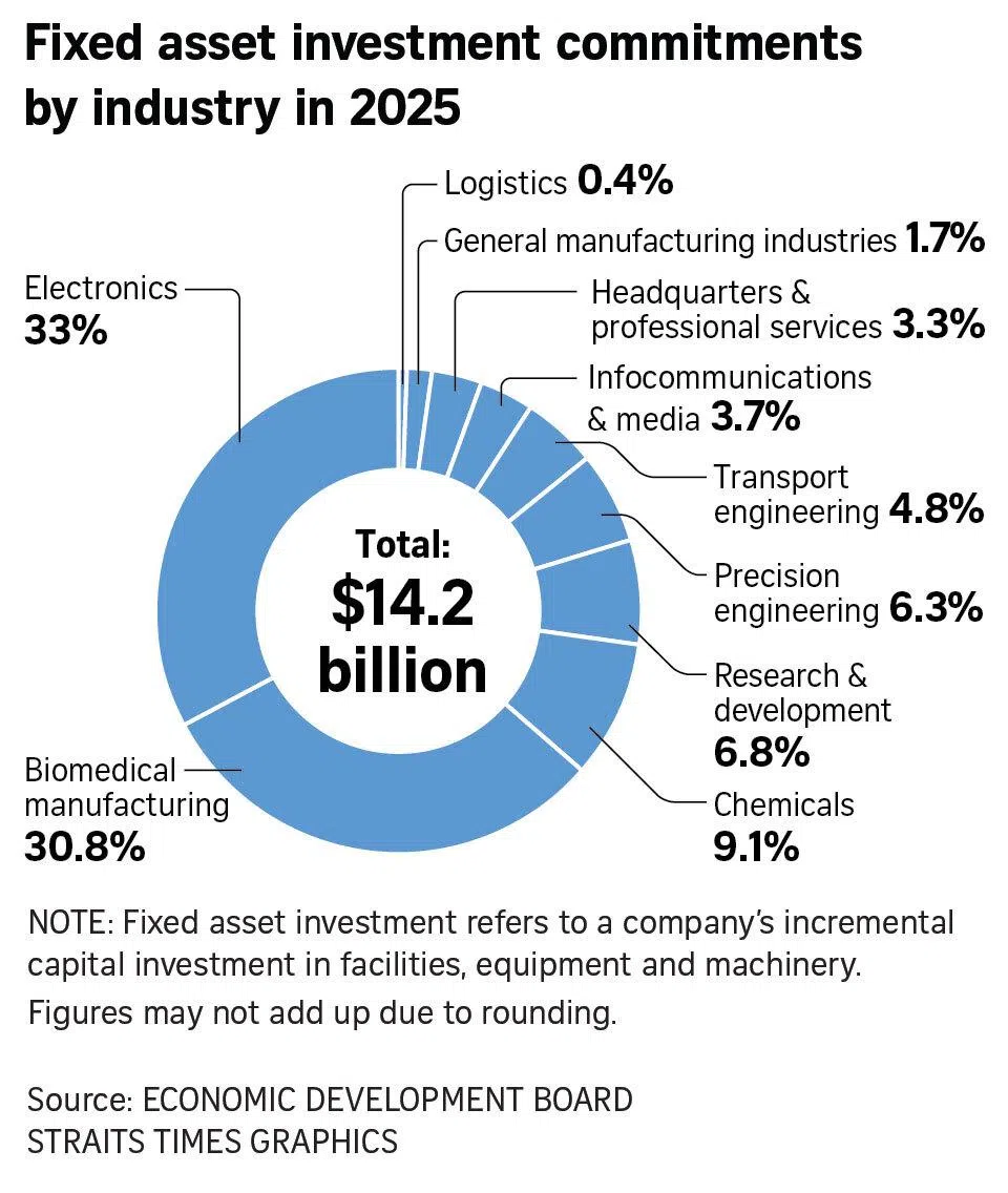 The Republic’s lead investment promoter, the Economic Development Board (EDB), said fixed asset investment (FAI) commitments in 2025 amounted to $14.2 billion, up from $13.5 billion in 2024 and $12.7 billion in 2023.
