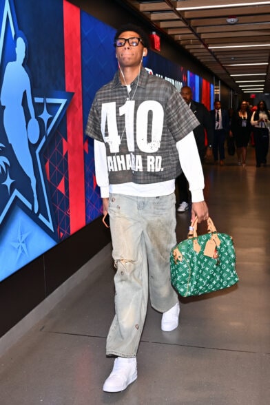 Ace Bailey of Team Melo arrives to compete in the Rising Stars Game.