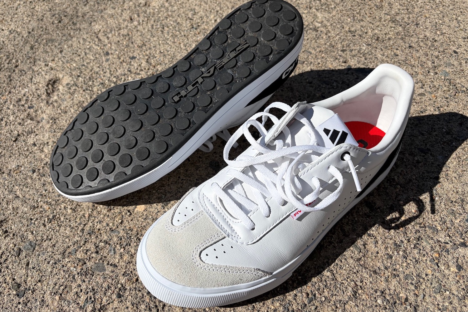 The style of the Sleuth DLX 2 is so casual, in fact, that they look a lot like the everyday white leather sneakers that so many people wear (in the white color, anyway). And I mean that in a good way; these shoes are stylish. I could wear them walking around downtown in Reno, Copenhagen, or New York City, and they wouldn’t be out of place. And they’re comfortable, too. The soles are quite forgiving and flexible. I walked several miles in them the other day, and it didn’t feel like I was walking around in flat-pedal mountain bike shoes.