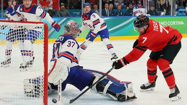 WATCH | Connor Hellebuyck denies Canada’s Devon Toews: