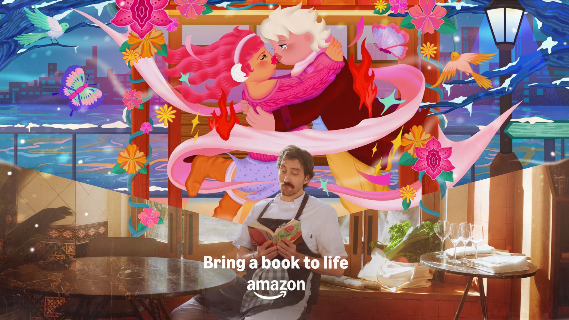 In ‘Bring a Book to Life’, the latest campaign from Droga5 London, part of Accenture Song, for Amazon Books, we’re taken on a visual adventure that every reader engages in as they make their way through thrillers, romances, and historic adventures. It’s an evolution of Droga 5’s first campaign, ‘That Reading Feeling Awaits’, which “helped raise reading intent, and increased our effectiveness through the funnel,” says Larry Seftel, group creative director. Building on that foundation was an aim for the agency and the brand, with the Droga5 team focused on “what the reading feeling actually was, and what made reading so unique compared to other media we can consume,” he adds.