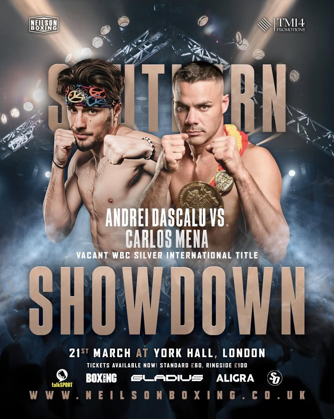 Spain’s Carlos Mena will have an important opportunity in his career when he faces undefeated Romanian fighter Andrei Dascalu on March 21 for the WBC Silver International title in an event that will take place at the historic York Hall in London.