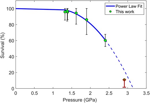 Finally, less than 10% survived when the researchers conducted a shot at 2.9 Gigapascals, proving that their power law prediction was robust: