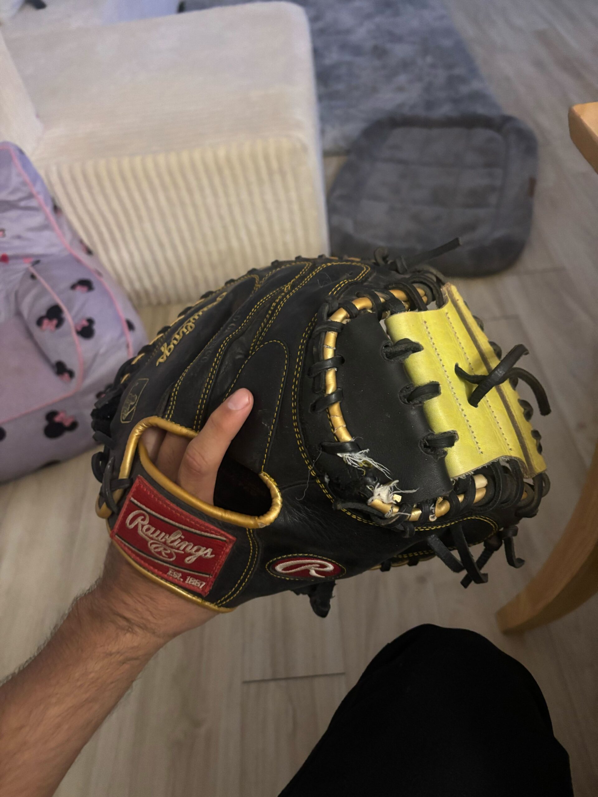 Back in his apartment, Gómez-Gudiño’s Rawlings mitt now sits quietly on display.
