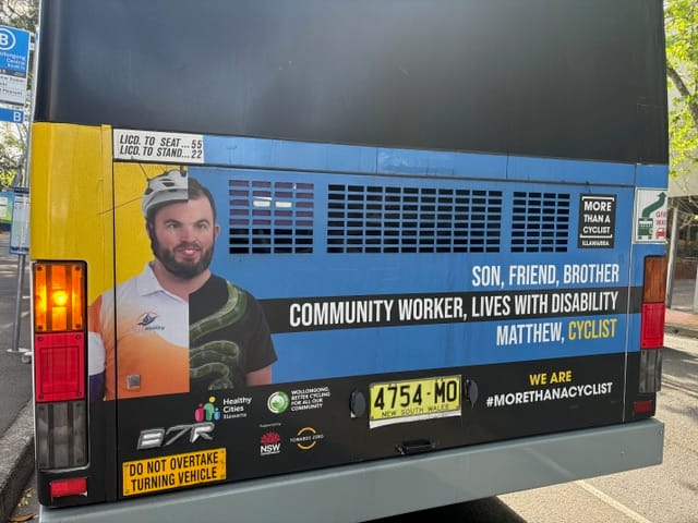Matt was one of the first faces in the Healthy Cities More Than a Cyclist campaign, advocating for safer experiences and driver empathy on roads in the Illawarra. Now, the campaign is launching nationwide.