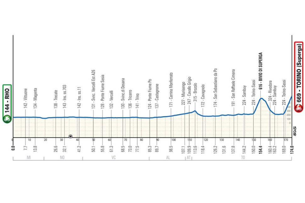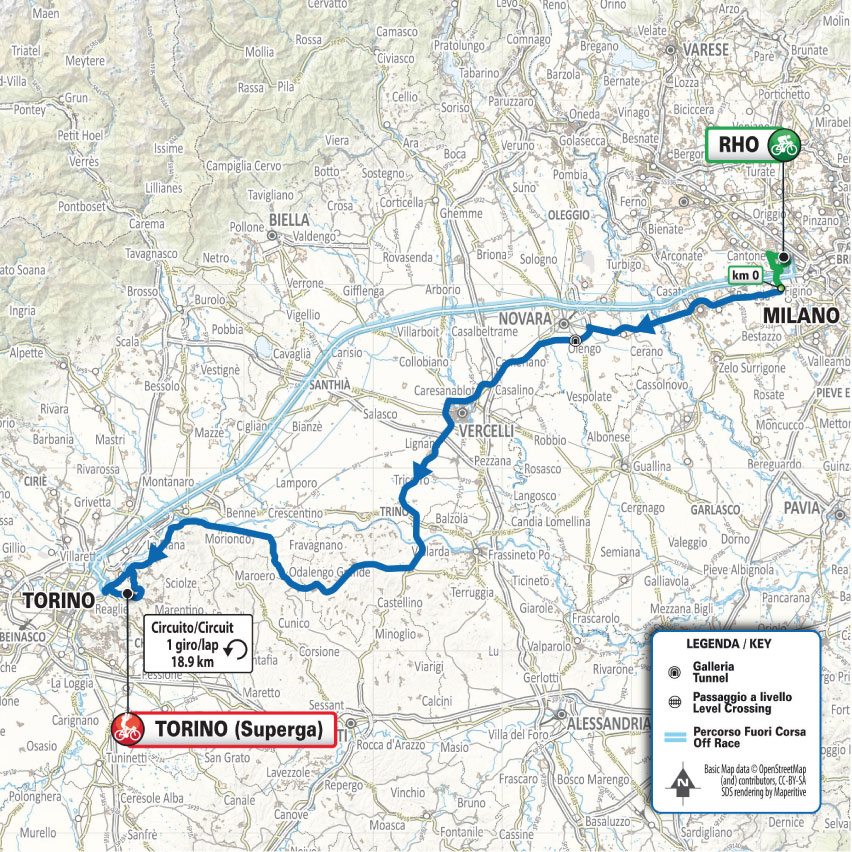 Like the name suggests, the parcours runs from Milan to Turin. The claim to Milan, however, is held by the start town of Rho, which sits in the city’s western suburbs.