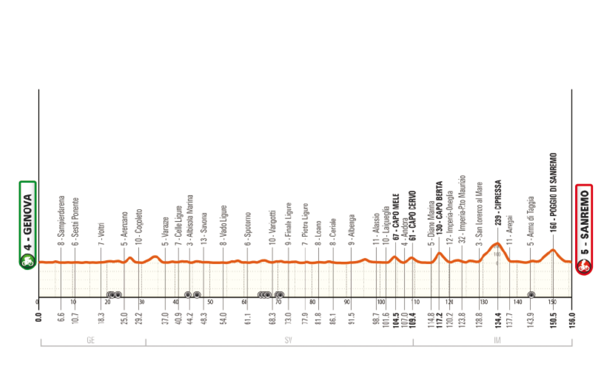 Where: Genova to San Remo, 156 km