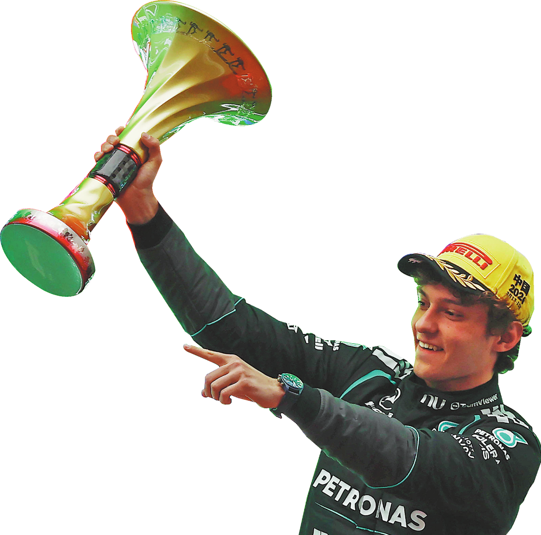 Antonelli, 19, holds his winner’s trophy during the award presentation ceremony on Sunday. YIN LIQIN/CHINA NEWS SERVICE