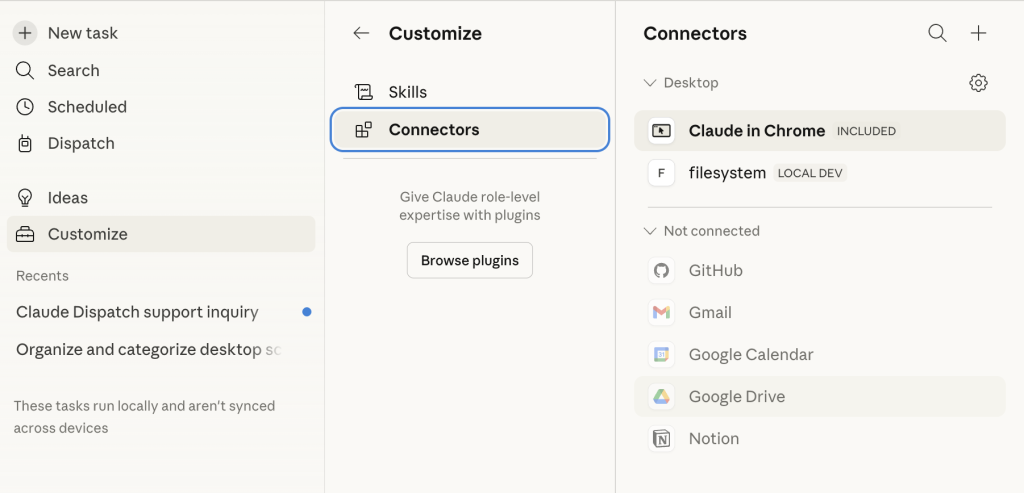 Instead of starting a new session for each task, you have a single persistent thread with Claude Dispatch. This thread doesn’t reset – Claude retains context from previous tasks, so you can pick up where you left off – on laptop or phone. In fact, it is quite hard to restart even if you want to.