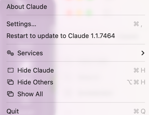 And after updating, when I restart Claude Desktop, I see this: