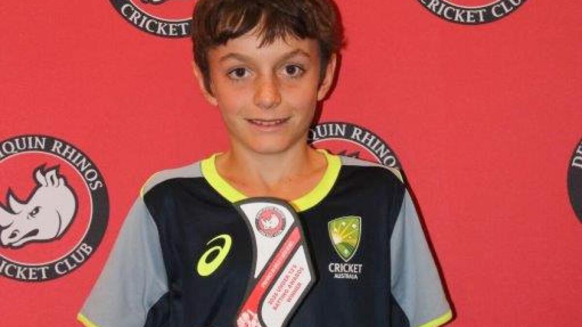 Rhinos 2025/26 Under-12 league and Cummins bowling award winner Ned Hussey.