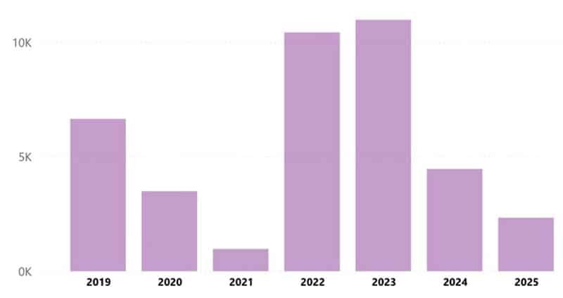 Thai commencements in higher education from 2019–2025. Source: Australia Department of EducationA mixed performance