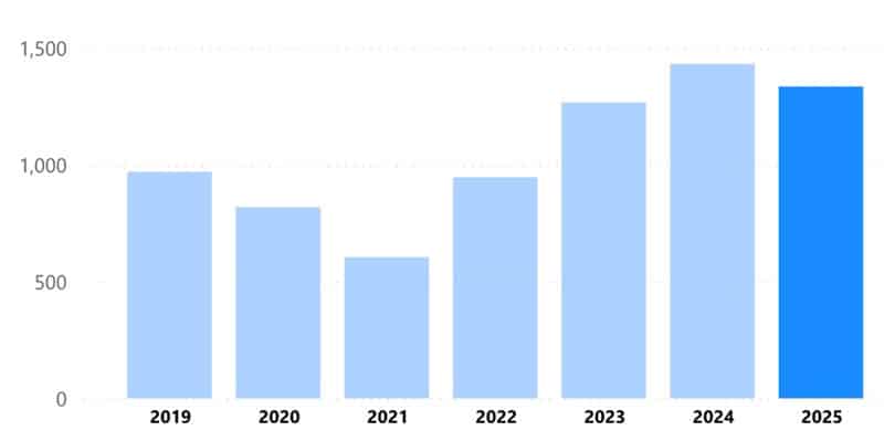 Thai commencements in ELICOS from 2019–2025. Source: Australia Department of Education