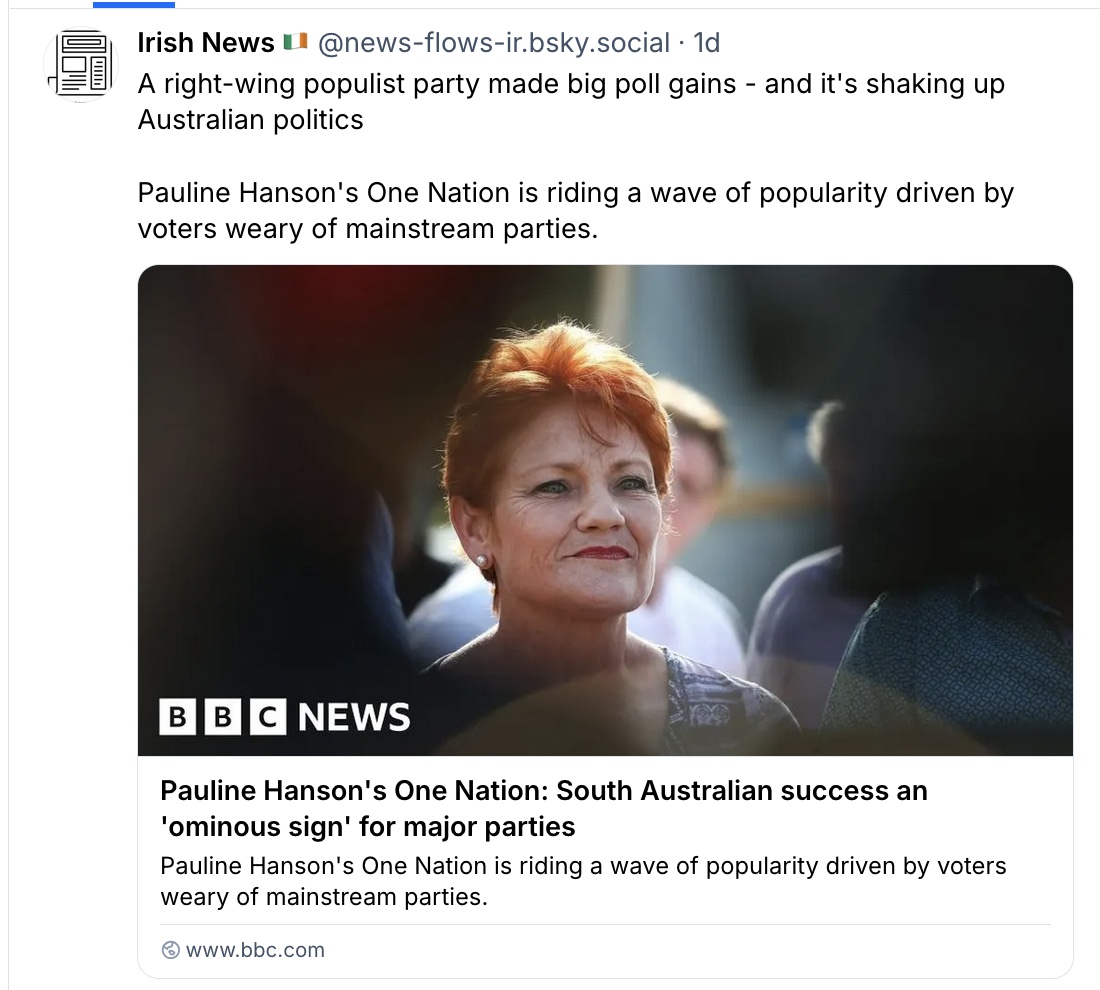 While such shifts have been building over decades, the scale of the One Nation vote in this election — and the collapse of the Liberal Party’s primary vote — marks a significant moment. The Guardian reports that the next test will be the 9 May Farrer by-election, followed by the Victorian and NSW elections.