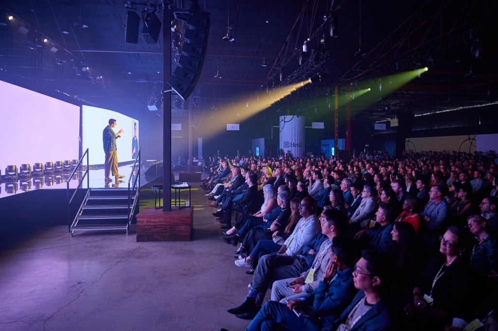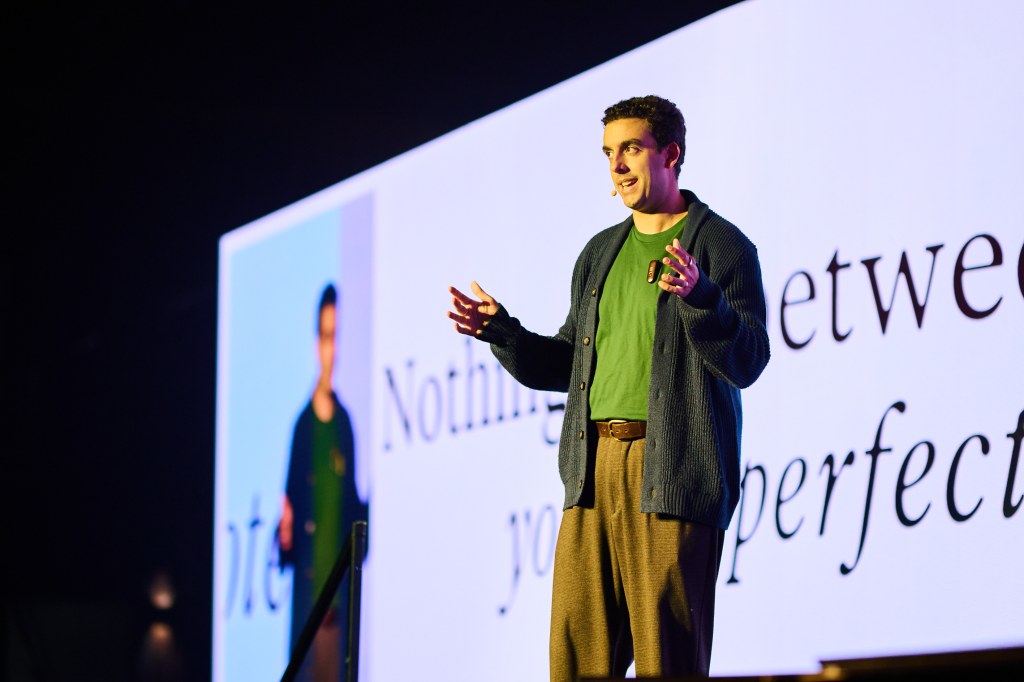 Tom Kelly, the CEO and founder of Heidi on stage in Melbourne. Image: Heidi