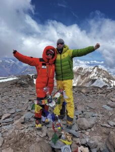 Regine Mai with her guide Jakob Urth on the summit of Aconcagua (6,960.8m), ahead of their Everest summit attempt. Photo: Jakob Urth